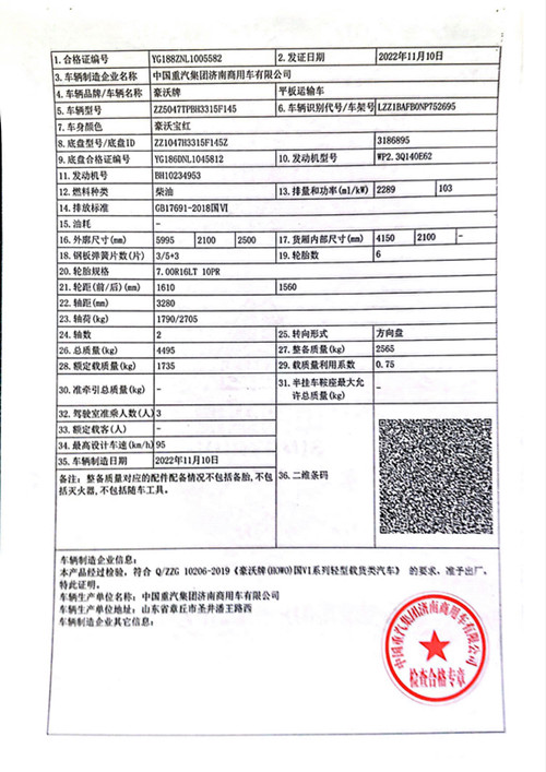 濰柴140馬力國六發動機,法士特8檔帶高低速變速箱,3280軸距,700鋼絲胎,整車尺寸:5995*2100/2250*2500,帶中控,電窗,皮座椅,氣喇叭,全包裹,車鑰匙遠程遙控玻璃升降,原廠空調。